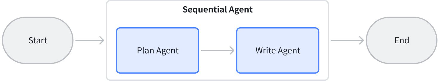 :应用程序的协调管理部分,基于预定义的逻辑,按照自身类型(顺序 / 并发 / 循环)控制子 Agent 执行流程。Workflow Agents 产生确定性的,可预测的执行模式,不同于 ChatModel Agent 生成的动态随机的决策。- 顺序 (Sequential Agent):按顺序依次执行子 Agents